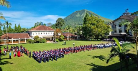 Jumat, 9 Juni 2023 – SMP Lokon St. Nikolaus Tomohon menamatkan 68 siswa/i angkatan ke-10, yang menamai angkatan mereka 10acious (baca:tenacious). Sesuai tradisi, kegiatan diawali Misa Syukur di Gereja St. Nikolaus dan berlanjut di LOSNITO Indoor Sporthall. Siswa/i 10acious dibawah naungan ketua angkatan Nadia Sariowan mengambil tema “Dare to Jump Higher”. Turut hadir dalam acara ini, Bapak Ronald Korompis selaku pendiri Yayasan Pendidikan Lokon. Beliau mengingatkan pentingnya 5 pilar Kurikulum Berbasis Kehidupan yang selalu digaungkan di SMP Lokon, yaitu (1) Aku ada karena kita ada, (2) Berpikir positif, (3) Ketekunan, (4) Kerendahan hati, (5) Takut akan Tuhan.